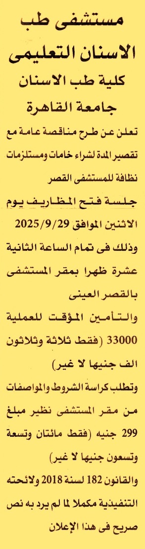 توريد خامات ومستلزمات نظافة للمستشفى القصر