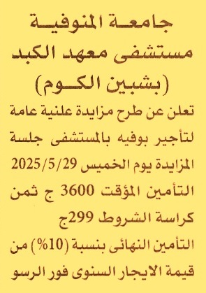 HOT Information مناقصة عامة لعملية تأجير بوفيه بالمستشفى عن جريدة الأهرام Post navigation مركز شباب منشية مشتهر شركة التعاون للبترول