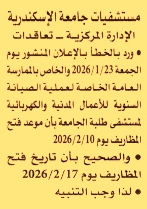 ورد بالخطأ بالإعلان المنشور بتاريخ 23/1/2026