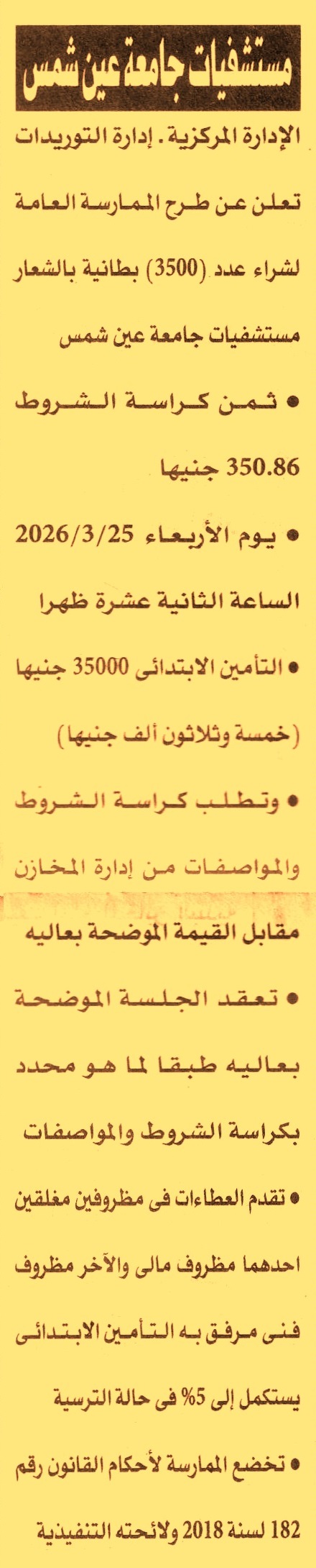 توريد عدد 3500 بطانية بالشعار مستشفيات جامعة عين شمس