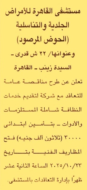 HOT information مناقصة عامة لعملية تقديم خدمات النظافة شاملة المستلزمات والأدوات عن جريدة الجمهورية Post navigation الهيئة القومية لسكك حديد مصر الهيئة القومية لسكك حديد مصر