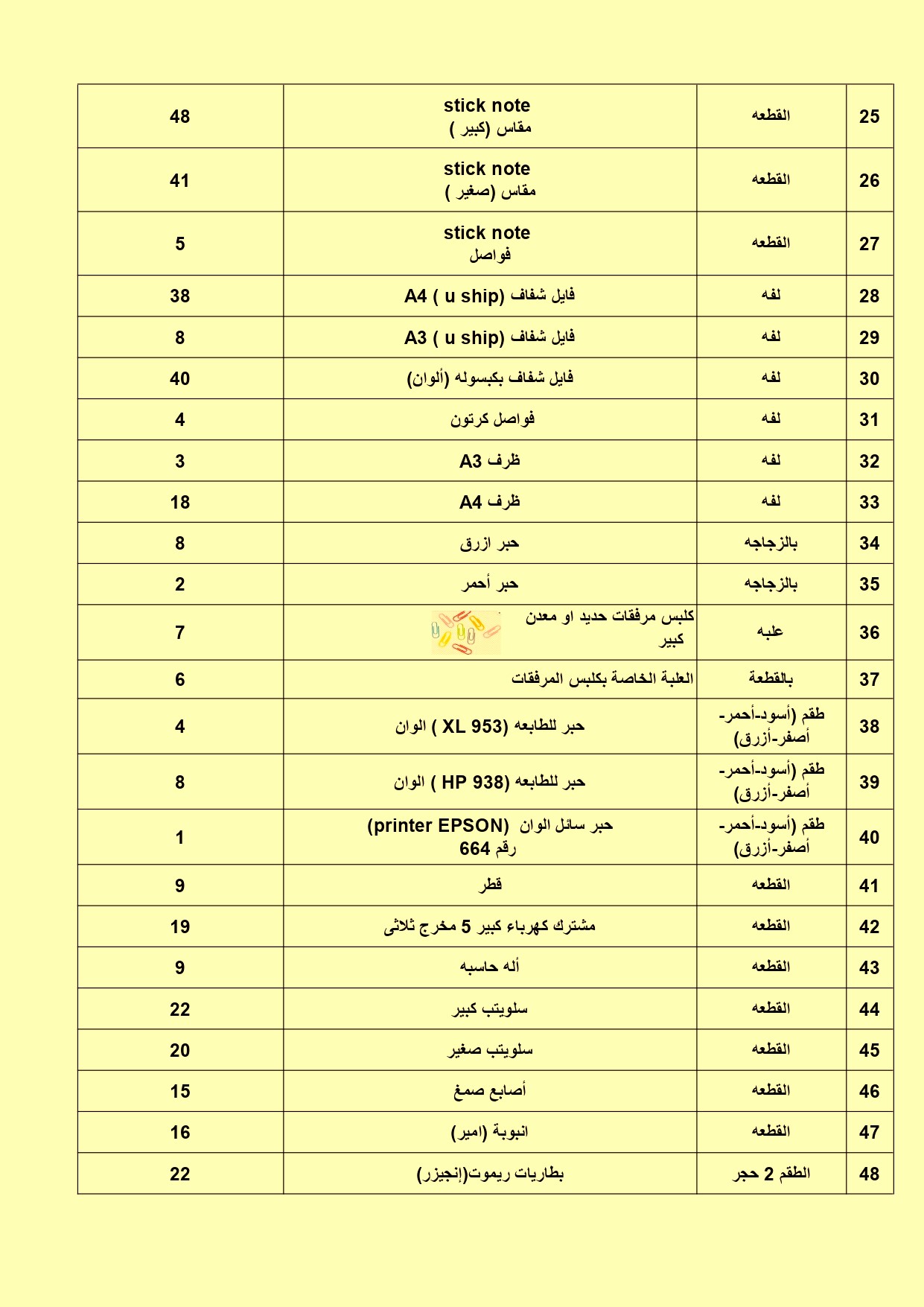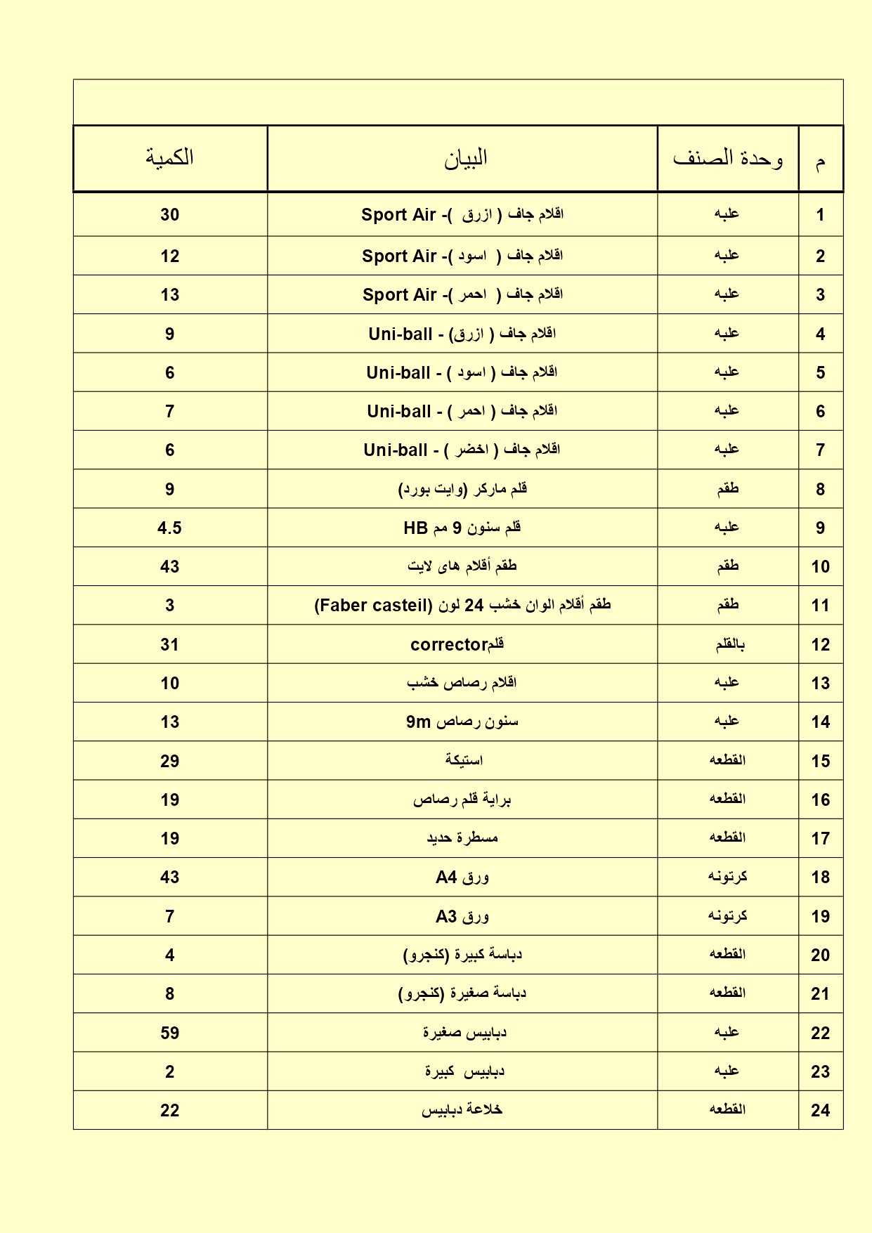 مطلوب على وجه السرعة توريد عدد 66 بند من الأدوات المكتبية ومستلزمات الحاسب المرفقة بالقائمة لمزيد من المعلومات يرجى الاتصال بالأستاذة/ مـي عادل Voice & Whats: 01023338612 HOT information HOT information HOT information Post navigation نادي الرياضات البحرية بالغردقة شركة القاهرة لتكرير البترول