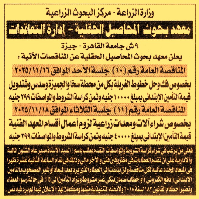 HOT Information مناقصة عامة رقم 10 لعملية فك وحل خطوط الغربلة بكل من محطة سخا والجميزة وسدس وشندويل عن جريدة الجمهورية Post navigation الشركة البورسعيدية للأعمال الهندسية والإنشاءات البحرية جهاز تنمية مدينة العبور الجديدة