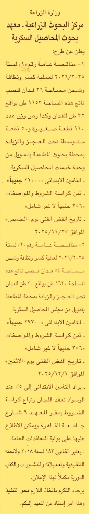 مناقصة عامة رقم 1/2025/2026 لعملية