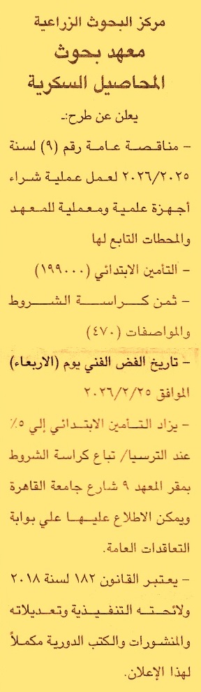 توريد أجهزة علمية ومعملية للمعهد والمحطات التابعة لها