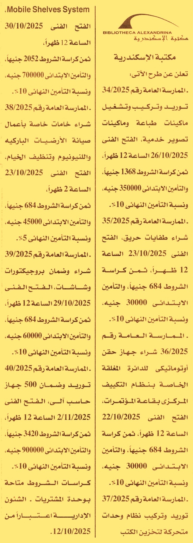 HOT Information ممارسة عامة رقم 34/2025 لعملية توريد وتركيب وتشغيل ماكينات طباعة وماكينات تصوير خدمية عن جريدة الأخبار Post navigation الوحدة المحلية لمركز ومدينة نجع حمادي مؤسسة دار التحرير للطبع والنشر