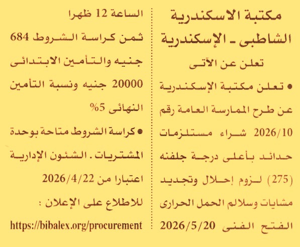 HOT Information ممارسة عامة رقم 10/2026 لعملية توريد مستلزمات حدائد بأعلى درجة جلفنة 275 لزوم إحلال وتجديد مشايات وسلالم الحمل الحراري عن جريدة الأهرام Post navigation محافظة الدقهلية نادي كفر العلو الرياضي والاجتماعي بحلوان