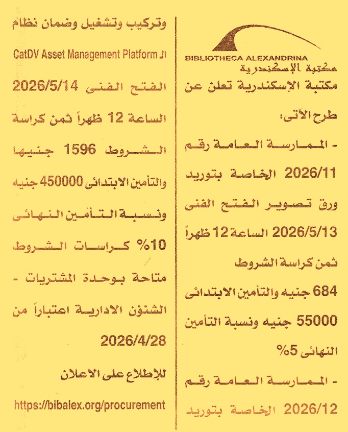 HOT information ممارسة عامة رقم 11/2026 لعملية توريد ورق تصوير عن جريدة الأخبار Post navigation بنك مصر شركة سمنود للنسيج والوبريات