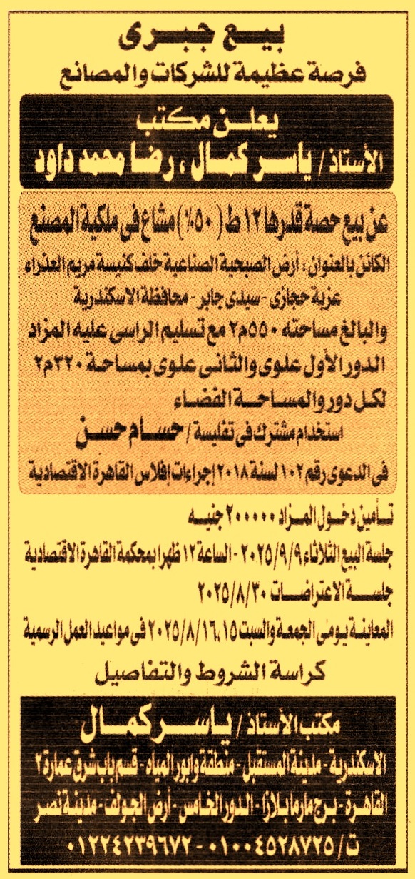بيع حصة قدرها 12ط 50% مشاع في ملكية المصنع