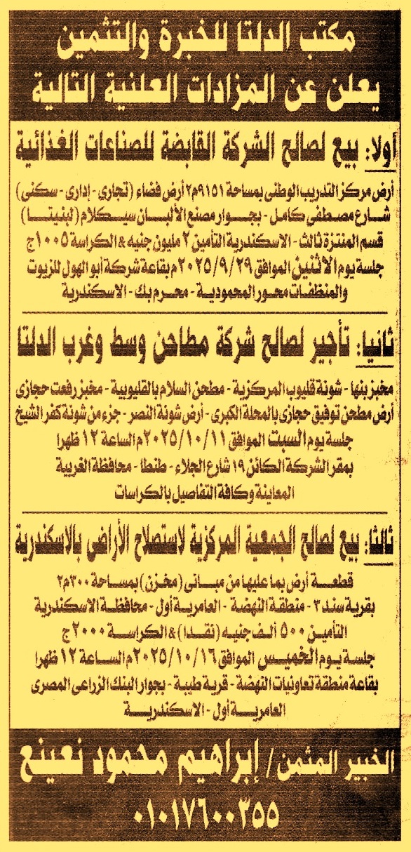 بشارع مصطفى كامل – بجوار مصنع الألبان سيكلام “لبنيتا” – قسم المنتزه ثالث – الإسكندرية
