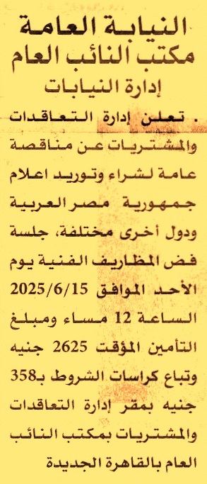 HOT Information مناقصة عامة لعملية توريد أعلام جمهورية مصر العربية ودور أخرى مختلفة عن جريدة الأهرام Post navigation شركة السكر والصناعات التكاملية المصرية شركة مطاحن مصر العليا