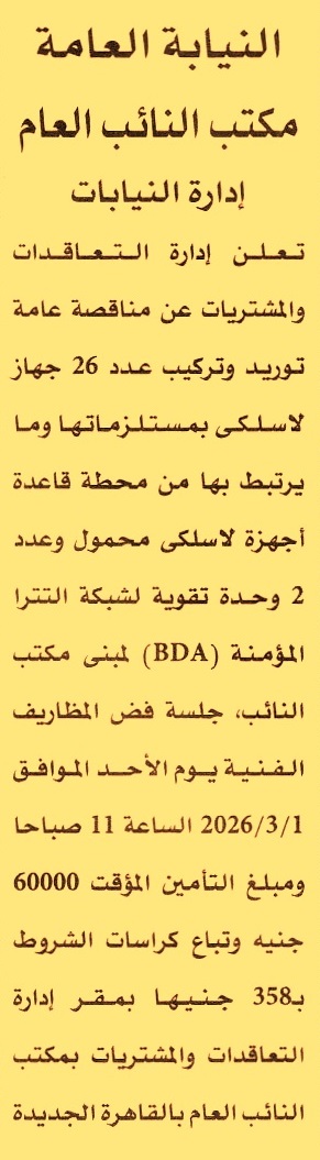 توريد وتركيب عدد 26 جهاز لاسلكي بمستلزماتها وما يرتبط بها من محطة قاعدة أجهزة لاسلكي محمول