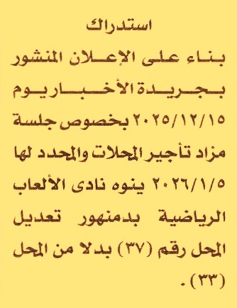 يتم تعديل المحل رقم 37 بدلا من المحل رقم 33