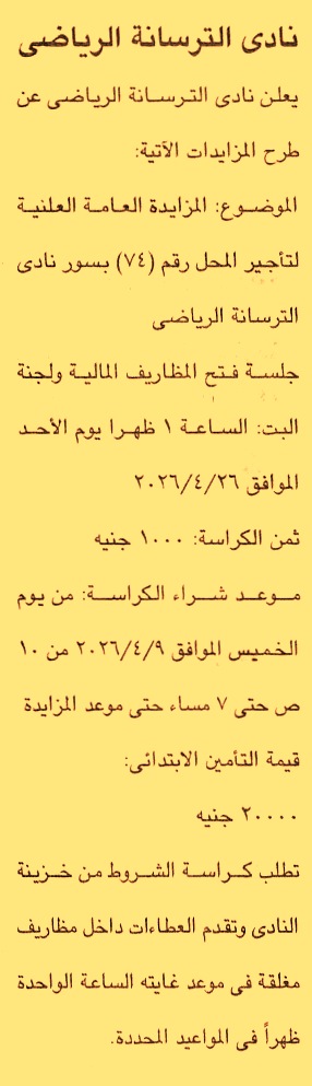 (تباع الكراسة من يوم 9/4/2026 من الساعة 10 ص حتى 7 م)
