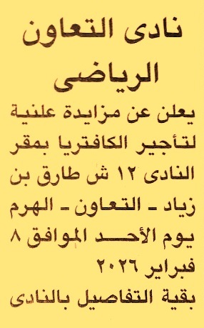HOT information مزايدة علنية لعملية تأجير كافتيريا عن جريدة الجمهورية Post navigation نادي الإعلاميين الرياضي الجمعية التعاونية للبناء والإسكان لأعضاء نقابة المهندسين بالبحيرة