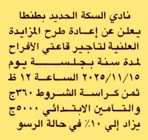 HOT Information مزايدة علنية لعملية تأجير قاعتي الأفراح لمدة سنة عن جريدة الجمهورية Post navigation معهد التخطيط القومي بنك التعمير والإسكان