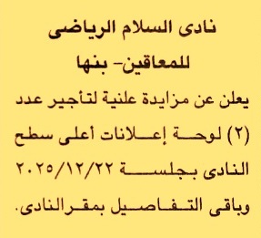 HOT Information مزايدة علنية عامة لعملية تأجير عدد 2 لوحة إعلانات أعلى سطح النادي عن جريدة الجمهورية Post navigation مركز شباب الحرفيين مركز شباب عين الصيرة