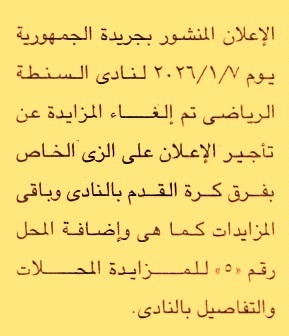 يعلن النادي عن إلغاء المزايدة العلنية لعملية