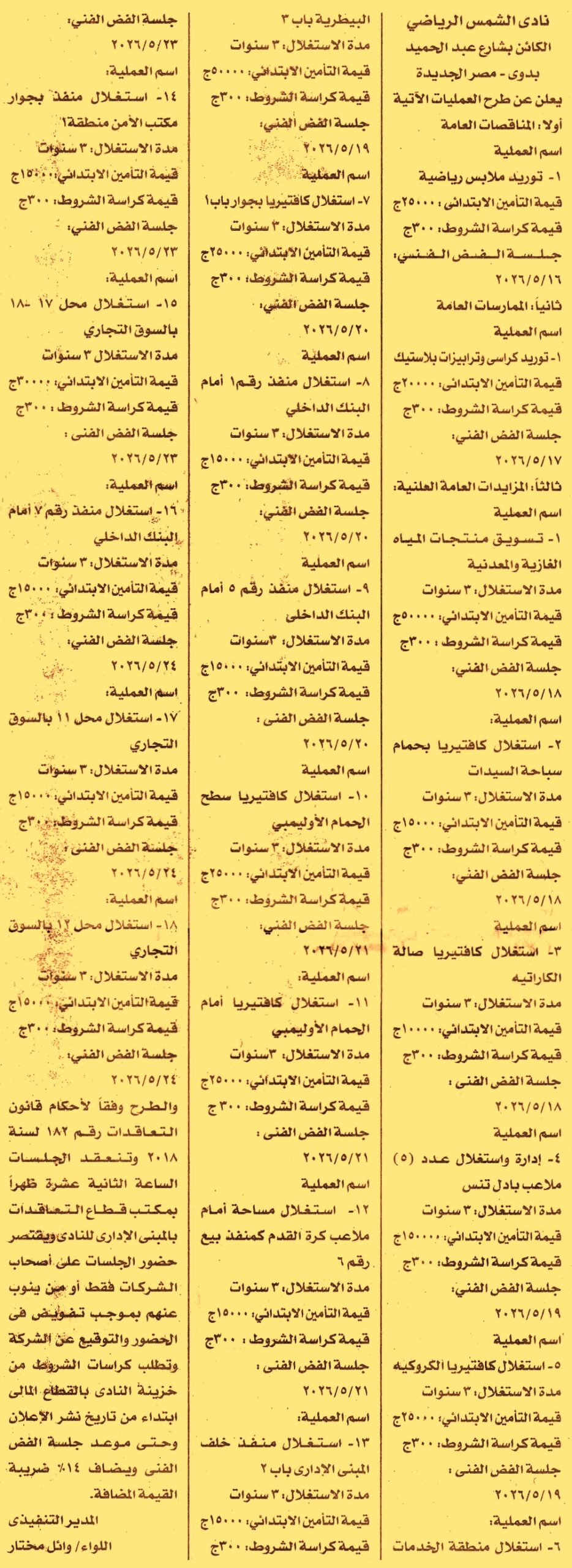 HOT information مناقصة عامة لعملية توريد ملابس رياضية عن جريدة الأهرام Post navigation الهيئة العامة للموانئ البرية والجافة والمناطق اللوجستية مجمع صالات حسن مصطفى