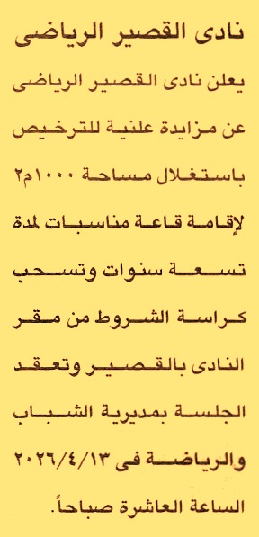 HOT Information مزايدة علنية لعملية تأجير مساحة 1000م2 لإقامة قاعة مناسبات بنظام حق الانتفاع لمدة 9 سنوات عن جريدة الجمهورية Post navigation مركز التنمية الشبابية بالفرستق جامعة طنطا