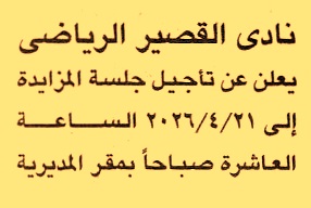 يعلن النادي عن تأجيل جلسة المزايدة العلنية العامة