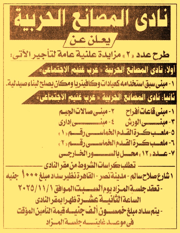 أولا: نادي المصانع الحربية “عرب غنيم الاجتماعي”