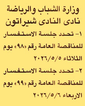 يعلن النادي عن تحديد جلسات الاستفسار للمناقصات الأتية