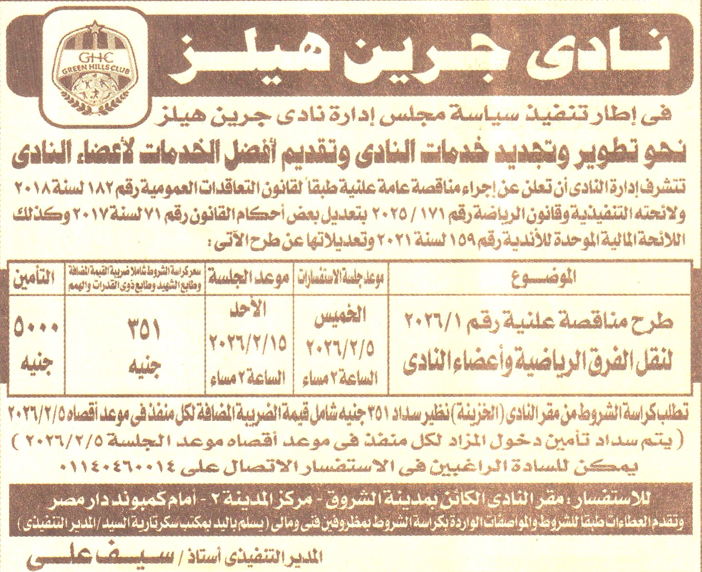 (جلسة الاستفسارات يوم 5/2/2026 الساعة 2 مساء)