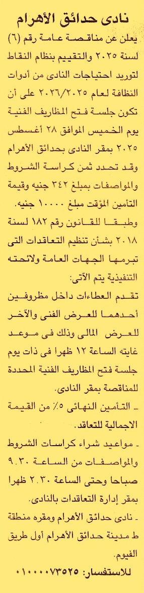 مناقصة عامة رقم 6/2025 لعملية