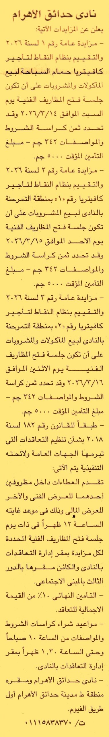 مزايدة عامة رقم 1/2026 لعملية