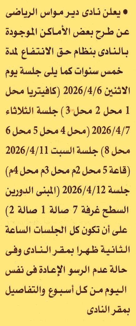 (تعاد الجلسة أسبوعيا حتى إتمام الرسو)