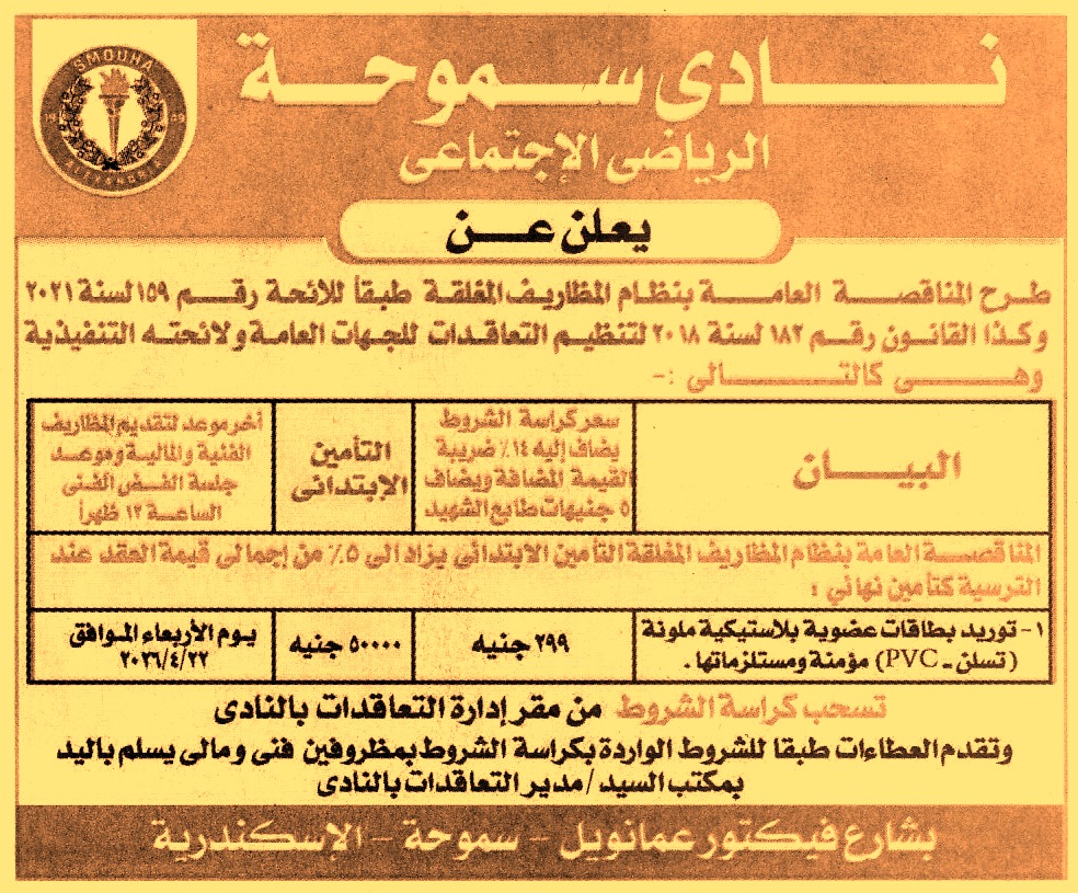 HOT Information مناقصة عامة لعملية توريد بطاقات عضوية بلاستيكية ملونة “تسلن – PVC” مؤمنة ومستلزماتها عن جريدة الجمهورية Post navigation الجمعية التعاونية المشتركة للإصلاح الزراعي