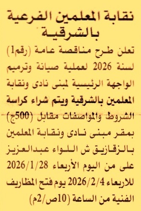 (تباع الكراسة في موعد أقصاه يوم 4/2/2026 من الساعة 10 ص حتى 2 م)