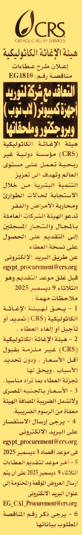 (تطلب الكراسات وتقدم العروض عن طريق البريد الإلكتروني قبل موعد غلق التقديم يوم 9/12/2025