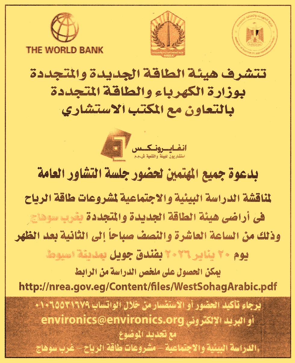 مع تحديد الموضوع “الدراسة البيئية والاجتماعية – مشروعات طاقة الرياح – غرب سوهاج”