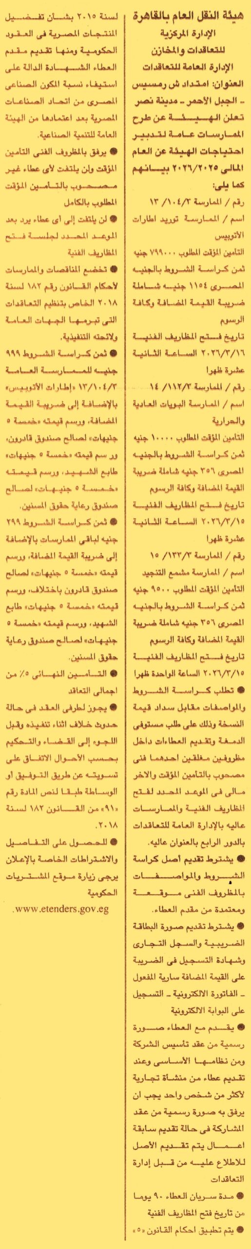 (يرفق مع المستندات عقد تأسيس الشركة وعند تقديم عطاء من منشأة تجارية لأكثر من شخص واحد يجب أن يرفق به صورة رسمية من عقد المشاركة وسابقة أعمال وأصل المستندات للإطلاع عليها ومدة سريان العطاءات 3 أشهر