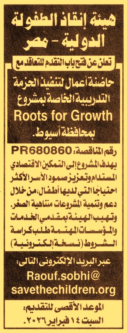 HOT Information مناقصة عامة رقم PR680860 لعملية التعاقد مع حاضنة أعمال لتنفيذ الحزمة التدريبية الخاصة بمشروع Roots for Growth بمحافظة أسيوط (تقدم نسخة إلكترونية من العطاءات عبر البريد الإلكتروني في موعد أقصاه يوم 14/2/2026) عن جريدة الأهرام Post navigation أحد البنوك الكبرى شركة الدقهلية لصناعة وتكرير السكر