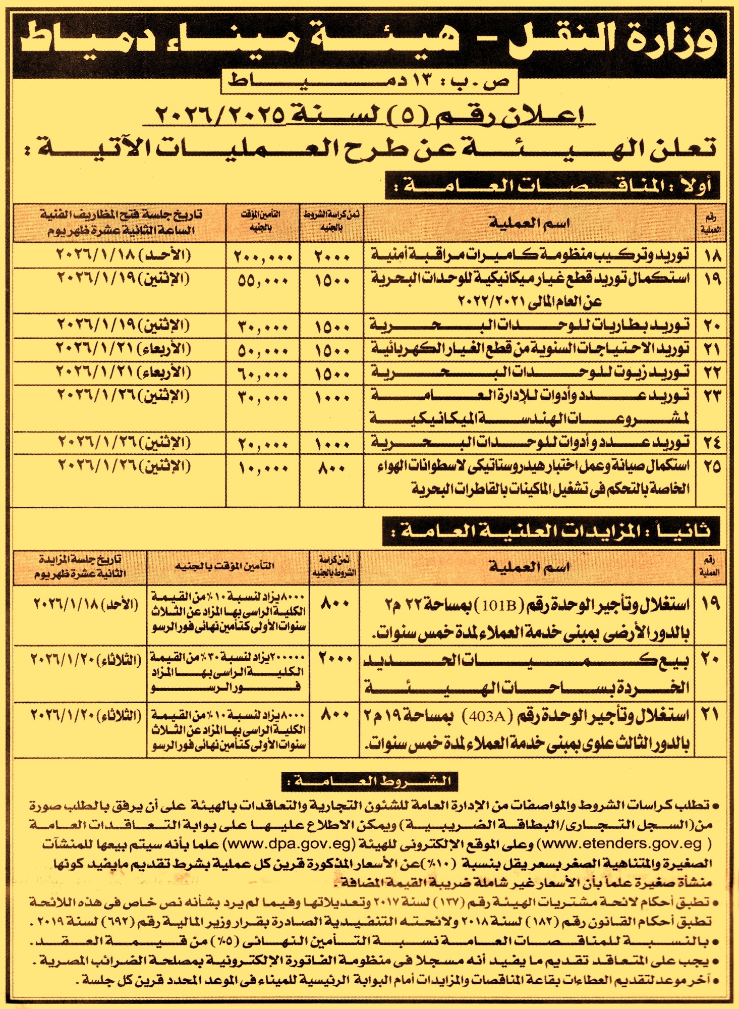 HOT information مناقصة عامة رقم 18/2025/2026 لعملية توريد وتركيب منظومة كاميرات مراقبة أمنية (تباع الكراسة بخصم 10% للشركات الصغيرة) عن جريدة الجمهورية Post navigation مصلحة الميكانيكا والكهرباء نادي بدر الرياضي بالبحيرة