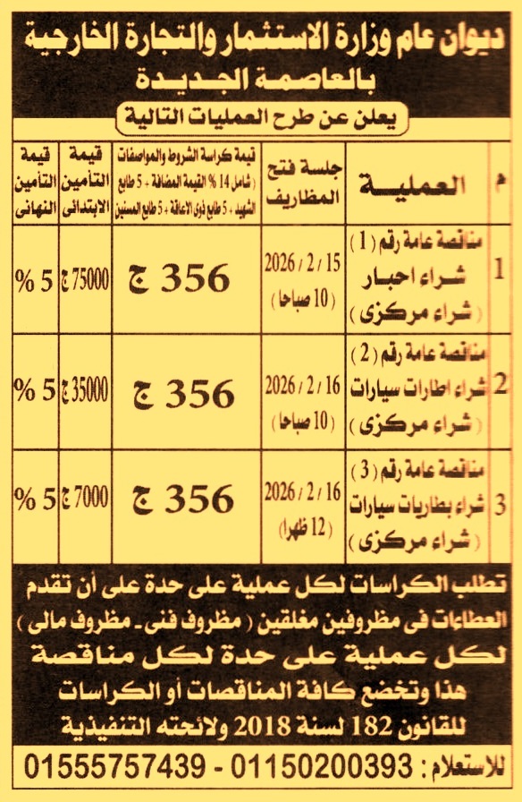 مناقصة عامة رقم 1 لعملية