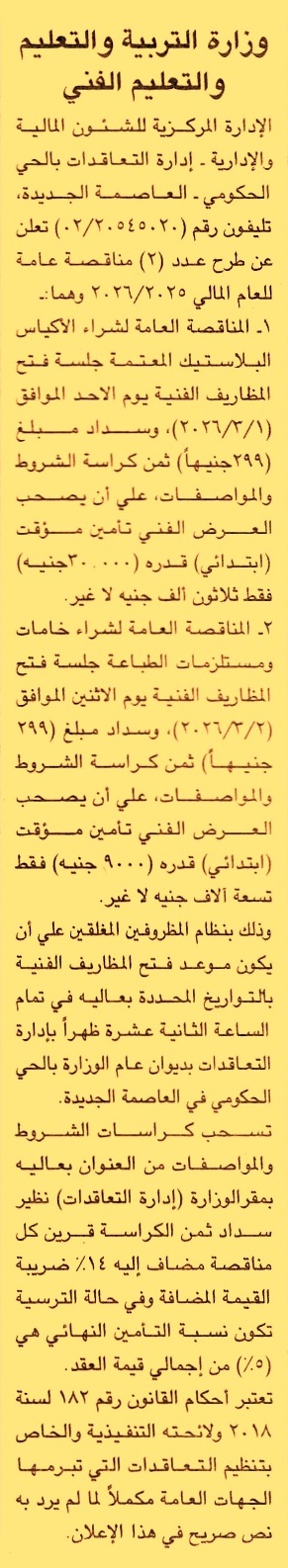 HOT information مناقصة عامة لعملية توريد الأكياس البلاستيك المعتمة عن جريدة الجمهورية Post navigation جامعة عين شمس مركز شباب الغوابين بدمياط