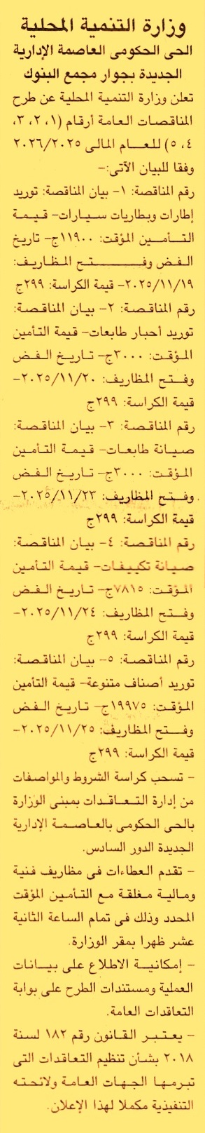 HOT Information مناقصة عامة رقم 1/2025/2026 لعملية توريد إطارات وبطاريات سيارات عن جريدة الجمهورية Post navigation جمعية إسكان العاملين بحي الوايلي جامعة الزقازيق
