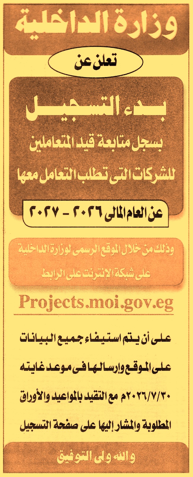 فتح باب القيد بسجل متابعة قيد المتعاملين للشركات التي تطلب التعامل معها