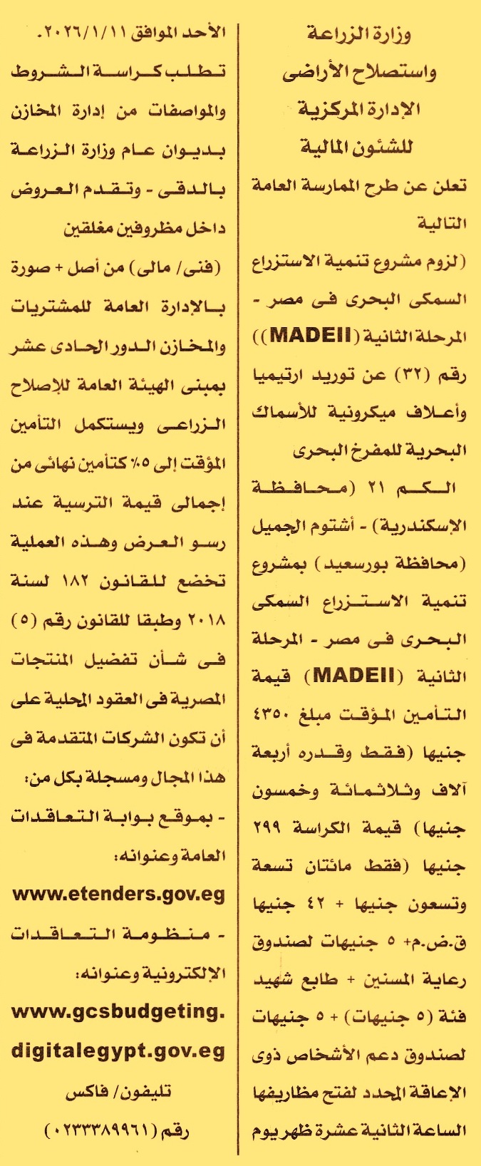 لزوم مشروع تنمية الاستزراع السمكي البحري في مصر “المرحلة الثانية MADE II”