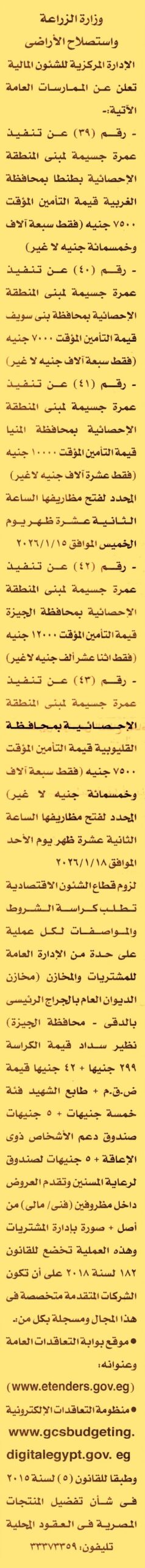 HOT Information ممارسة عامة رقم 39 لعملية تنفيذ عمرة جسيمة لمبنى المنطقة الإحصائية بطنطا (تقدم العطاءات من أصل وصورة) عن جريدة الأخبار Post navigation الإدارة العامة لصرف جنوب المنيا مصلحة الشهر العقاري والتوثيق