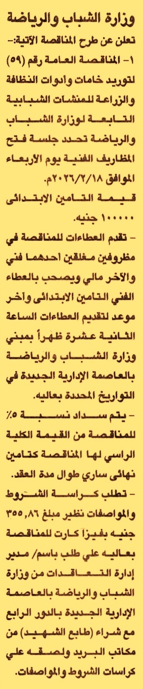 مناقصة عامة رقم 59/2025/2026 لعملية