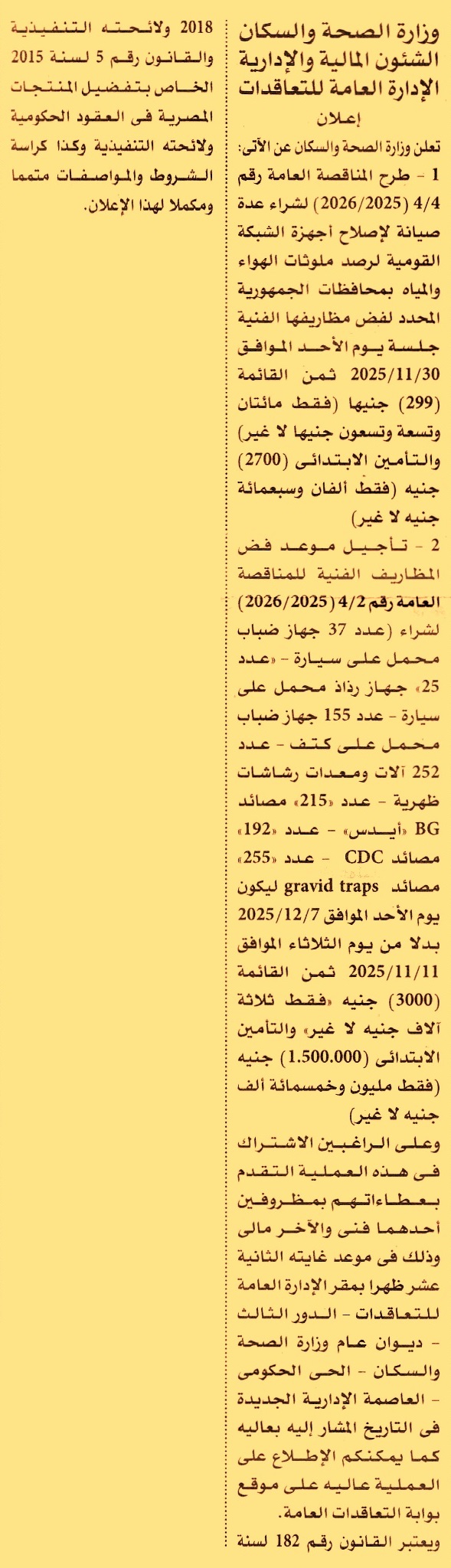 مناقصة عامة رقم 4/4/2025/2026 لعملية