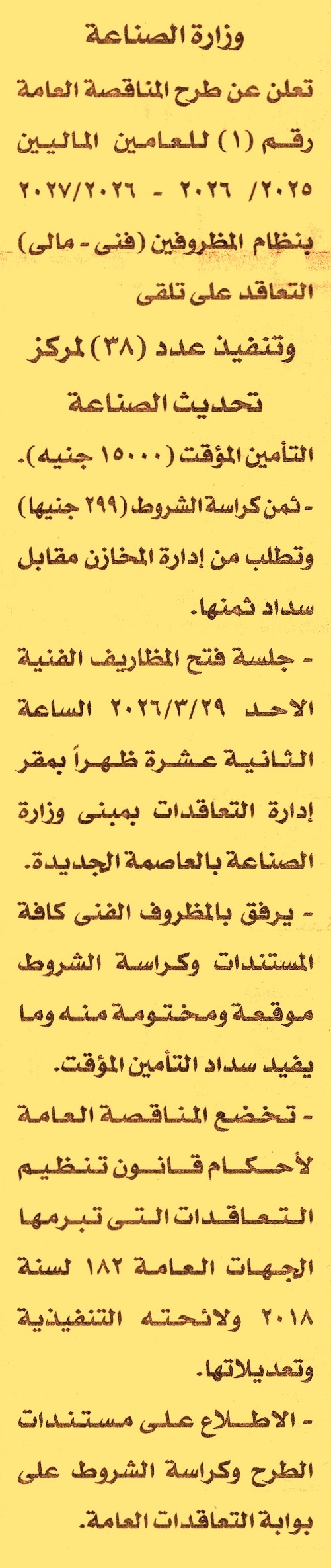 التعاقد على تلقي تنفيذ عدد 38 لمركز  تحديث الصناعة