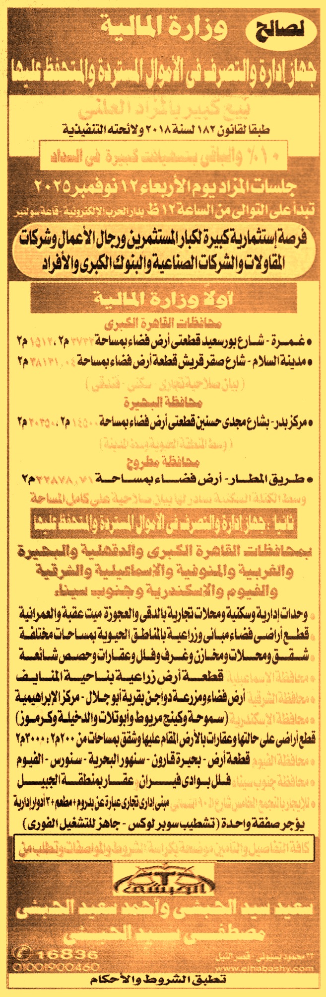 (3) قطعتي أرض فضاء بمساحة 14500م2 و20350م2 بشارع مجدي حسنين – مركز بدر – محافظة البحيرة