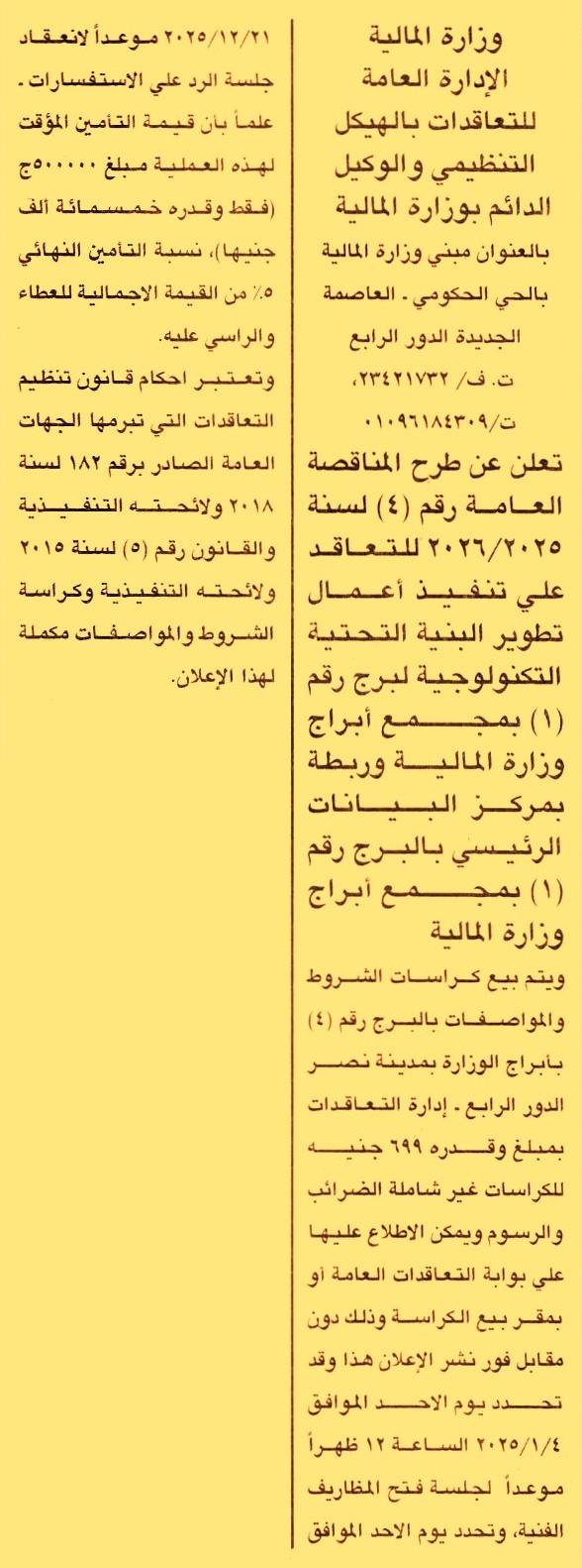 مناقصة عامة رقم 4/2025/2026 لعملية